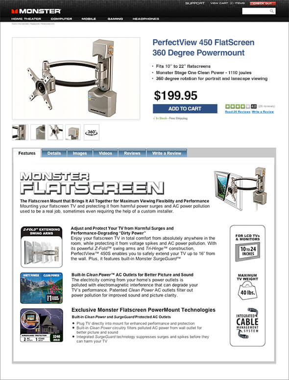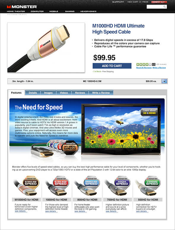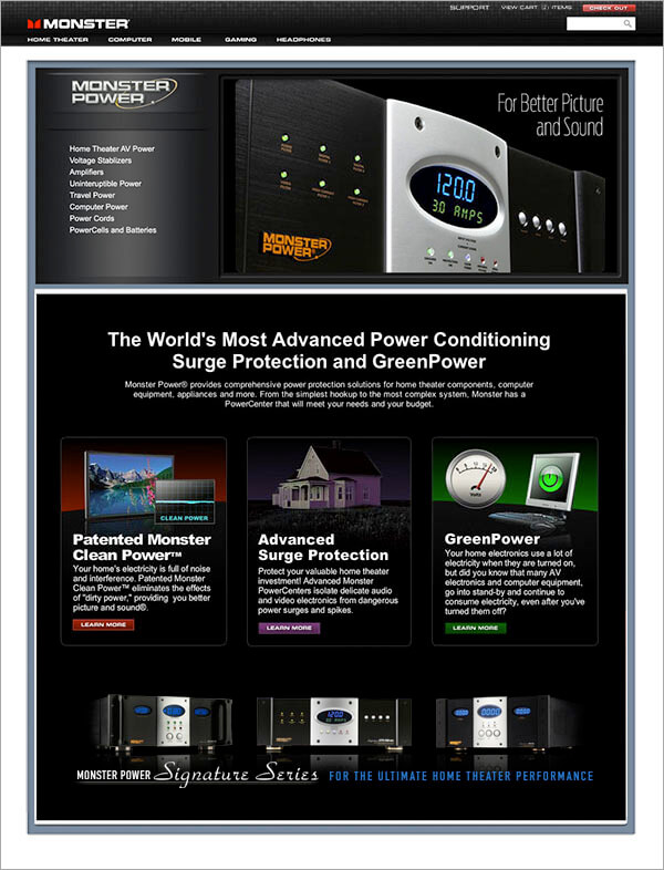 The challenge was to build an information architecture and navigation system that created intuitive paths to the products and information queried. We also needed to provide better educational content to address the customer’s confusion around Monster Cable’s proprietary technologies.